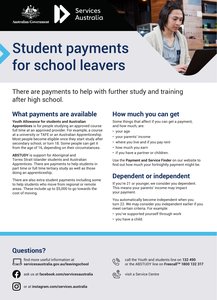 We know you play a big role in helping students and their families with the transition after high school. We’ve created a school leavers resources to help you. Please use it to share information about our payments and services for students.